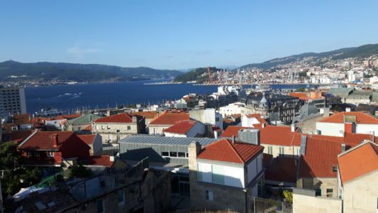 Vigo liegt in Galicien an der Nordwestküste Spaniens. Die Mündung der Meeresbucht Ría de Vigo wird durch die Insel Cíes geschützt. In der Altstadt steht die Kirche Concatedral de Santa María. Auf dem Berg tront über der Stadt die Festung Castelo do Castro.